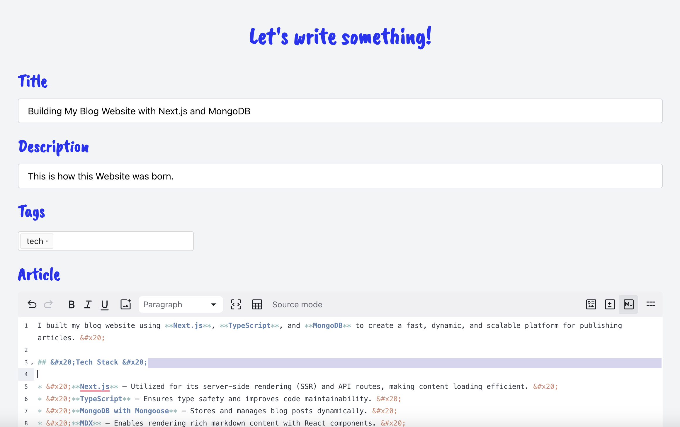 I built my blog website using Next.js, TypeScript, and MongoDB to create a fast, dynamic, and scalable platform for publishing articles.
